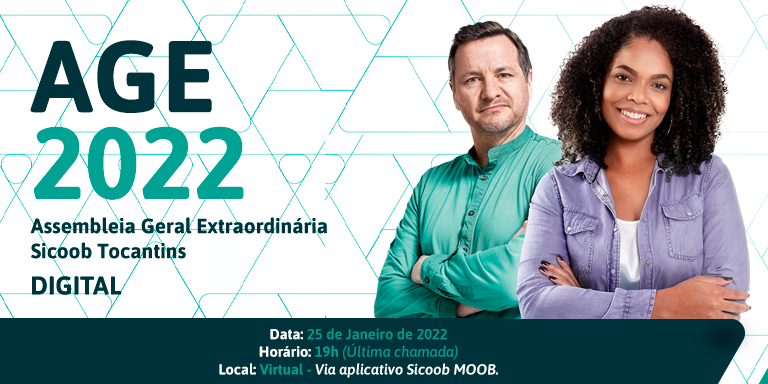 O Sicoob Tocantins convida seus cooperados para participar da primeira Assembleia Geral Extraordinária (AGE), no dia 25 de janeiro, com primeira chamada às 17h, em evento totalmente virtual pelo aplicativo Sicoob Moob e Zoom. A AGE tem a finalidade de deliberar sobre a Reforma do Estatuto Social da Cooperativa e inclusão de novos artigos.