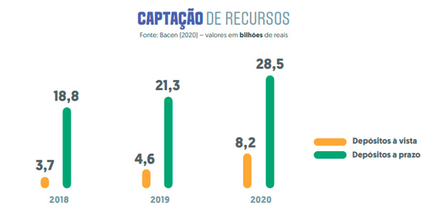 O aumento dos depósitos a prazo no período de 2019 a 2020 demonstra a confiança dos associados no sistema cooperativista e amplia a credibilidade do Sistema Nacional de Crédito Cooperativo (SNCC). Em 2020, os depósitos a prazo cresceram 34% e atingiram a marca de R$ 28,5 bilhões nas cooperativas gaúchas.