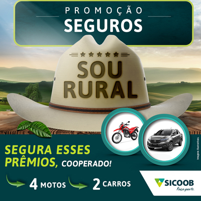 Já pensou adquirir um seguro que garante a proteção de bens, custeio, custeio, investimento e propriedade dos produtores rurais, e ainda possibilita concorrer ao tão sonhado carro ou moto zero quilômetro? São estas possibilidades que o Sicoob oferece até 30 de junho por meio da campanha “Sou rural, #EuProtejo”.