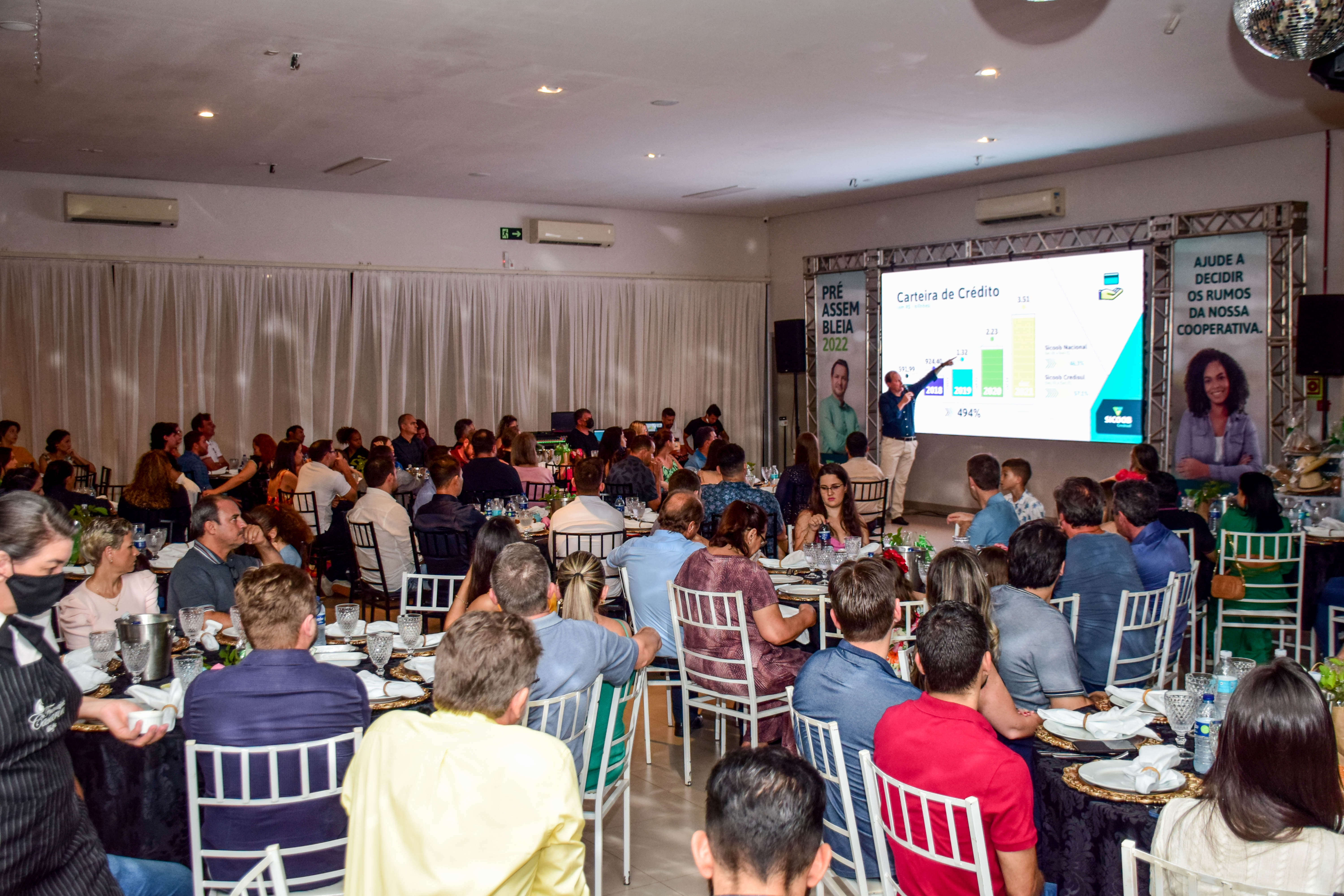 A “Capital Nacional do Agronegócio”, Sorriso, na região centro-oeste do Mato Grosso, a 398 quilômetros da capital Cuiabá, foi palco de mais uma rodada da Pré-Assembleia presencial 2022. O evento aconteceu na quarta-feira, 23 de fevereiro, e contou com 290 participantes no espaço Franciele Casarin Buffet. Os associados acompanharam de perto o crescimento da cooperativa, assim como elegeram o delegado que os representarão pelos próximos quatro anos.