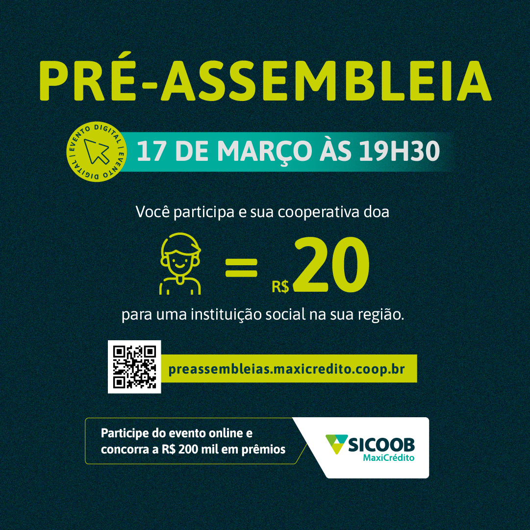 Para acompanhar a pré-assembleia, o cooperado deve se cadastrar no site preassembleias.maxicredito.coop.br. É neste mesmo endereço que ele deverá entrar no dia 17 de março, para validar sua participação e acessar o link para a transmissão ao vivo.