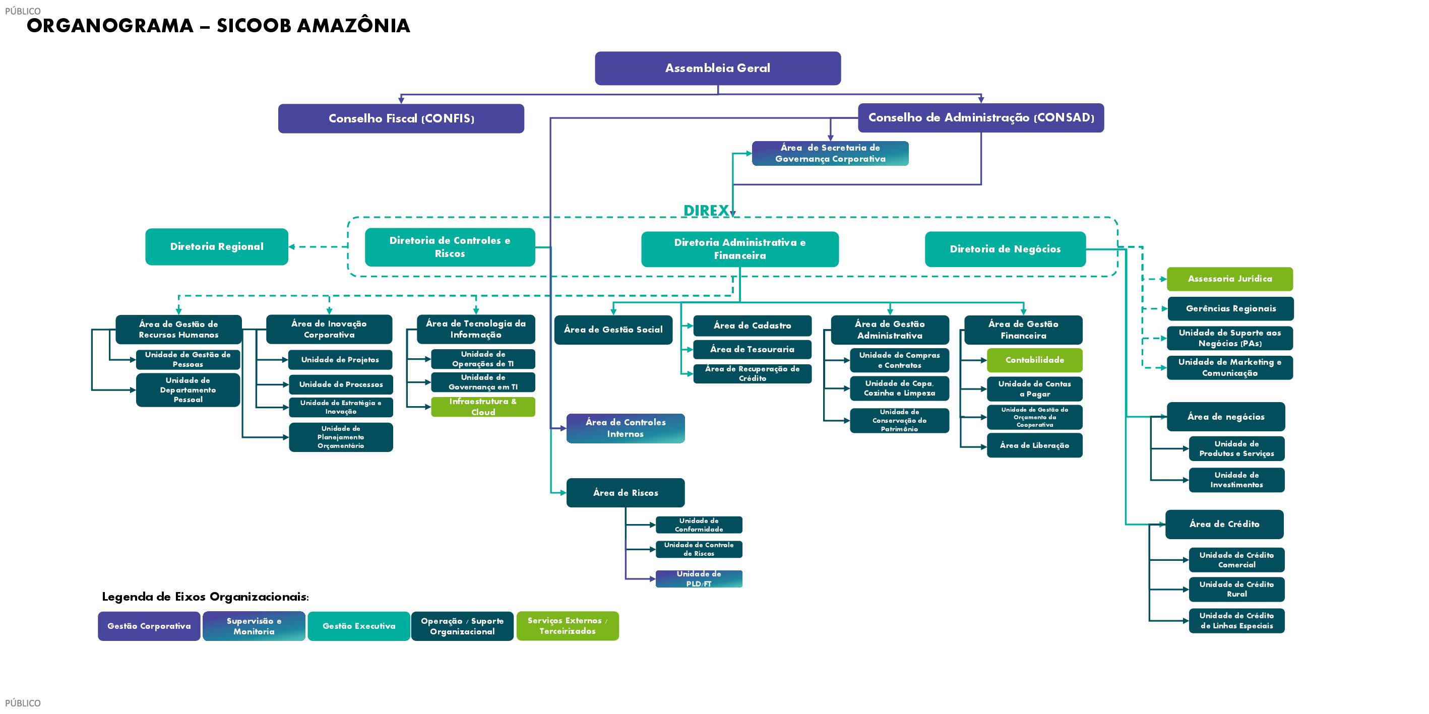 A estrutura organizacional mostra as relações e hierarquias que compõem uma empresa. Organizada no modelo de governança corporativa dual, a Sicoob Amazônia tem como órgão máximo o Conselho de Administração (Consad), eleito em Assembleia Geral.