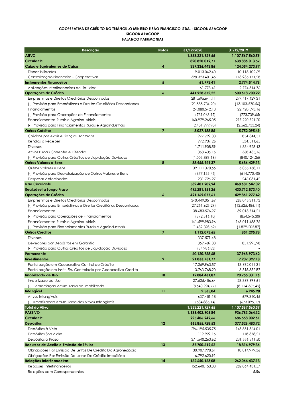 2. A) Balanço Patrimonial SICOOB ARACOOP_2020