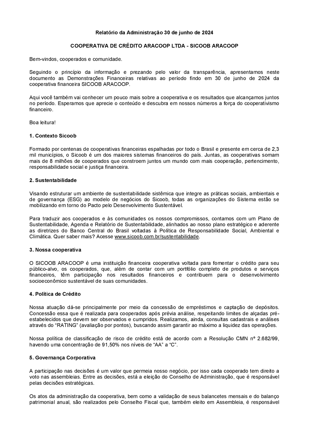 Relatórios - Sicoob Aracoop
