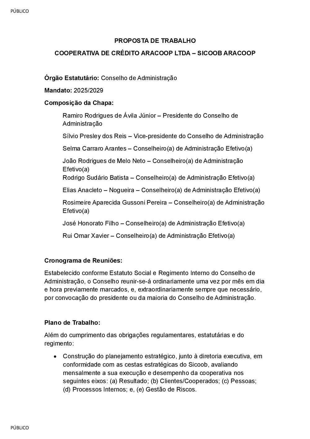 PROPOSTA DE TRABALHO CONSELHO ADMINISTRAÇÃO 25-29