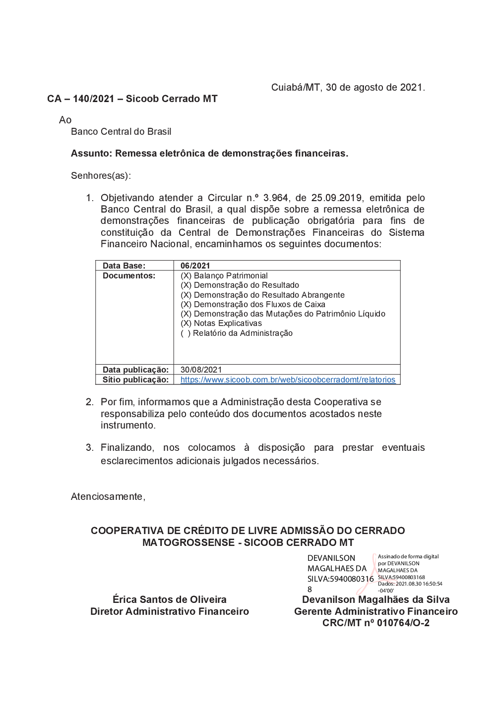 Demonstrações financeiras 2º Semestre - Sicoob Cerrado MT