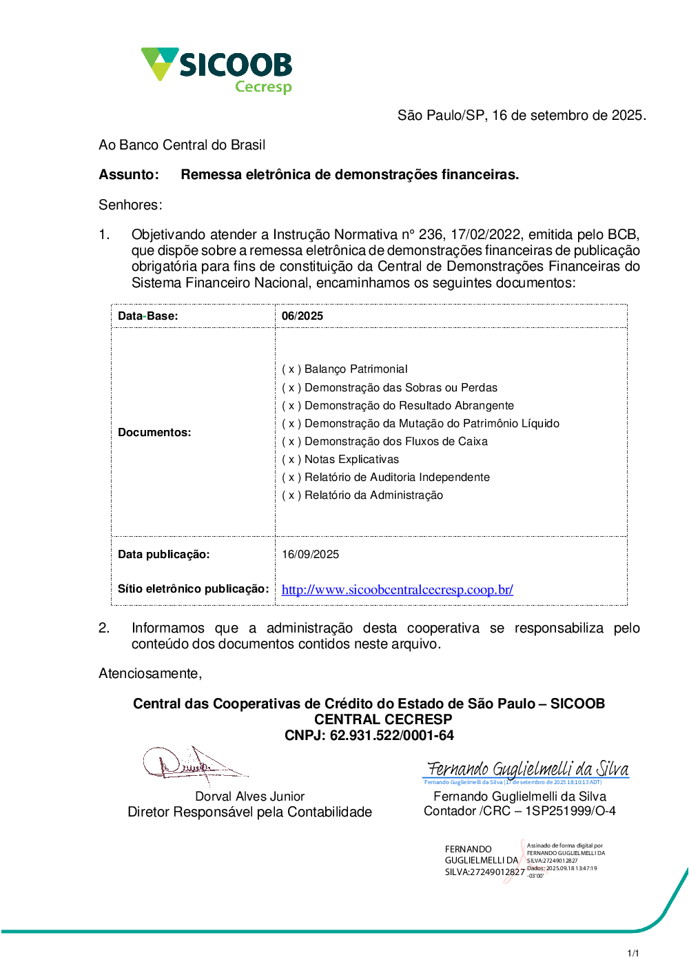 Remessa eletrônica de demonstrações financeiras. - assinado