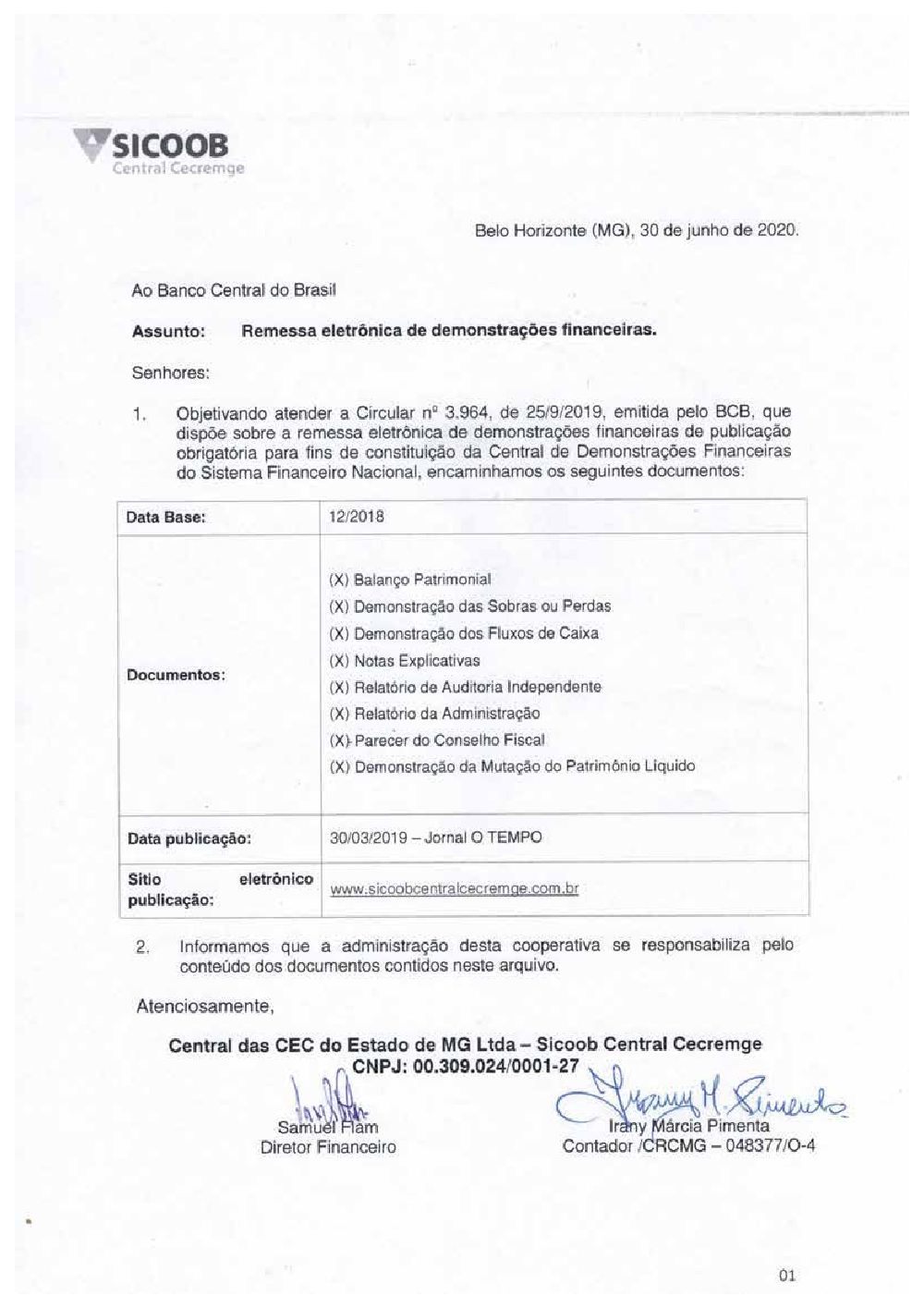 Demonstrações Contábeis Publicadas 12-2018 - 2