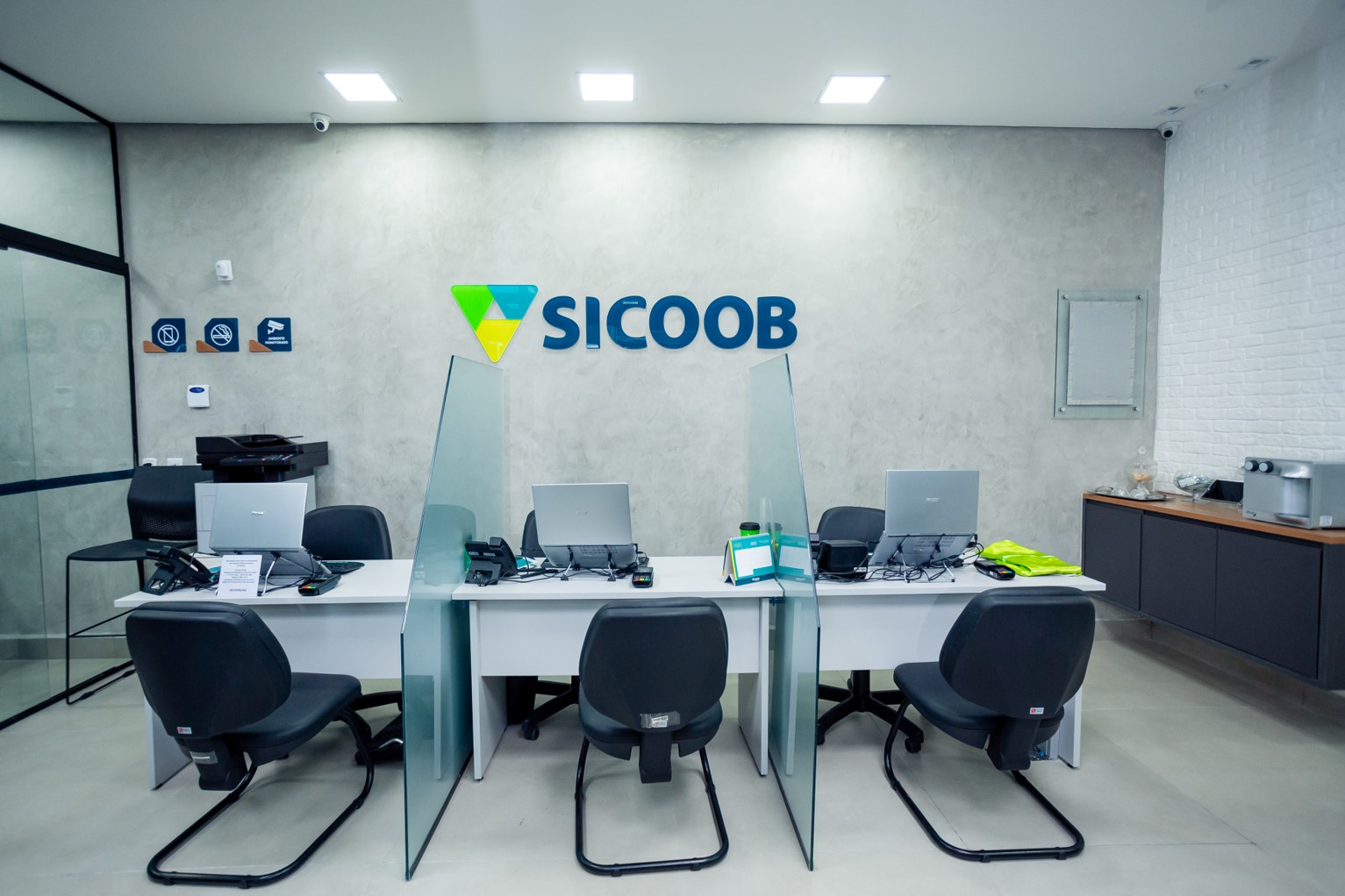 A agência do Sicoob Credinacional ocupa agora um lugar estratégico e de grande visibilidade, na entrada do estacionamento, que somado a um projeto arquitetônico arrojado e moderno, chama atenção de todos, garantindo uma melhor exposição da marca.