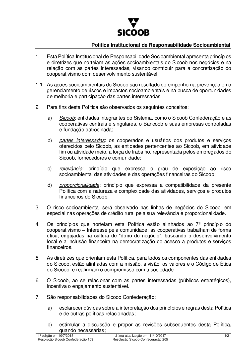 Política Institucional de Responsabilidade Socioambiental