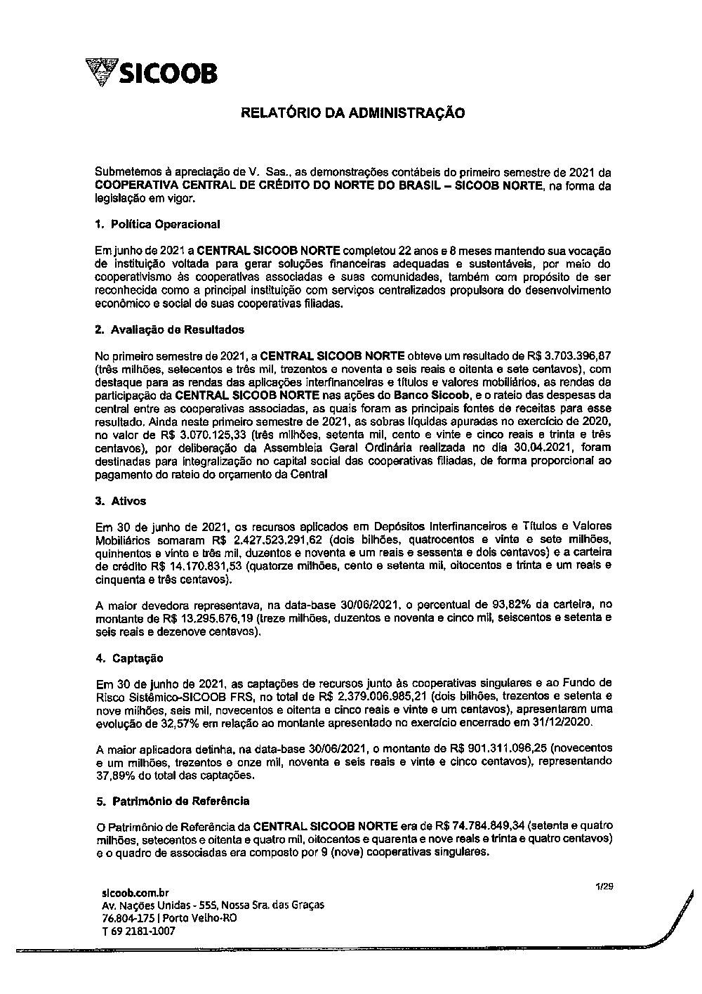 Relatório da Estrutura de Gerenciamento Centralizado de Riscos e de Capital do Sicoob 2º semestre 2019