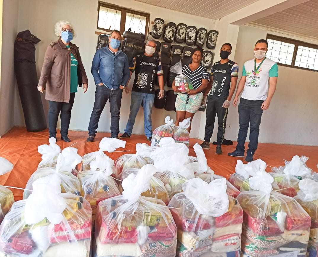 O Sicoob Ipê entregou 50 cestas básicas às mães dos alunos atendidos pelos projetos sociais Capoeira Sim, Violência Não e Muay Thai e Cidadania, no bairro Santa Luzia e região. A entrega precisou ser agendada durante o dia para evitar aglomeração das famílias nos locais da entrega, que contou com a presença da presidente da Cooperativa Elza Jorge e do diretor executivo, Dimas Amauri Paglione.