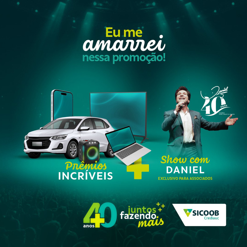 “Pensamos em várias situações para privilegiar as pessoas que são a essência dessa história tão linda que completa 40 anos e resolvemos disponibilizar um show de prêmios e contratar uma grande atração musical para o aniversário da instituição. Quanto ao cantor Daniel, decidimos realizar o show em Concórdia, cidade sede da cooperativa. É bem verdade que o espaço físico escolhido, o Centro de Eventos do município, é limitado e não comporta o número atual de associados que chega próximo de 70 mil pessoas. Por isso, decidimos envolver os ingressos do show no sorteio da promoção, como forma mais justa de contemplar pelo menos, uma boa parte dos nossos cooperados.