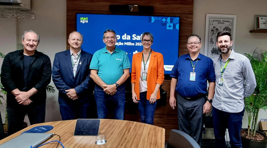 O presidente da Epagri, Dirceu Leite, o diretor de Ciência, Tecnologia e Inovação, Reney Dorow, e a gerente do Cepa, Edilene Steinwandter, foram recebidos no dia 11 de abril na sede do Sicoob Central SC/RS pelo presidente Rui Schneider da Silva, o diretor de Negócios Olavo Lazzarotto e o coordenador de Estratégia de Negócios Agro, Paulo Vitor Sangaletti. Na pauta, um balanço sobre o Giro da Safra e a possibilidade de estender o programa para outras regiões de Santa Catarina.