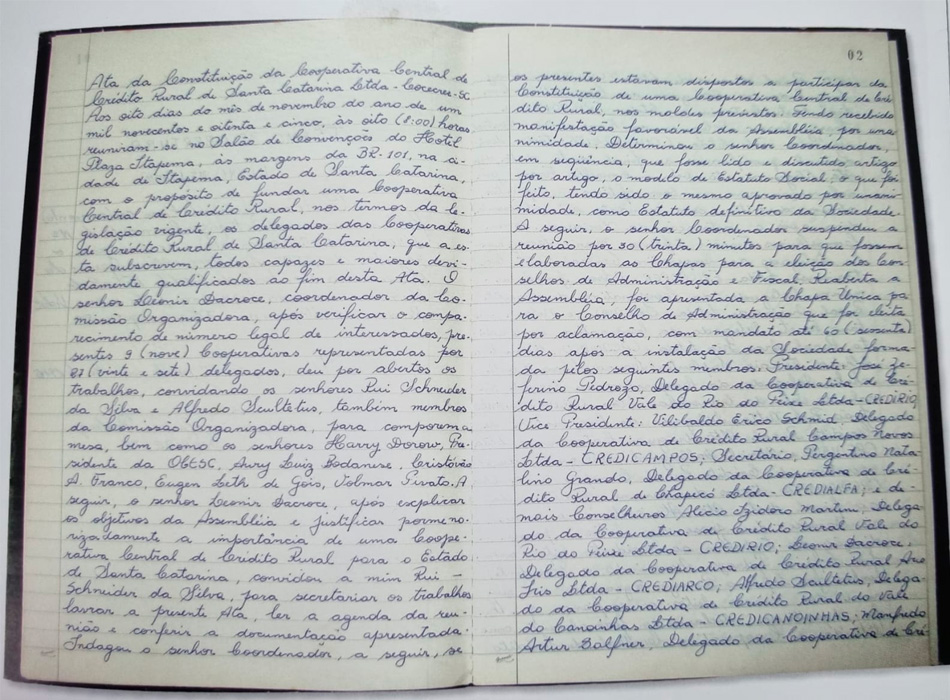 Ata de fundação da Cooperativa Central de Crédito Rural de Santa Catarina (Cocecrer/SC), atual Sicoob Central SC/RS