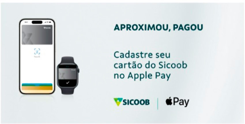 O Sicoob firmou uma parceria com o Apple Pay, a plataforma de pagamentos móveis da Apple. Agora, os portadores dos cartões do Sicoob podem realizar pagamentos por aproximação de forma rápida e segura, usando dispositivos Apple como iPhones e Apple Watches.