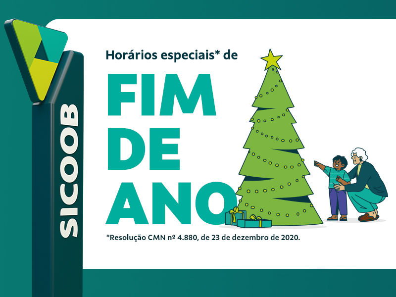 A Federação Brasileira de Bancos (Febraban) divulgou os horários de funcionamento das instituições financeiras nos dias pré e pós-feriado de Natal e Ano-Novo. As agências do Sicoob terão horário reduzido na véspera de Natal e não haverá expediente na terça-feira, dia 31 de dezembro e 1º de janeiro.