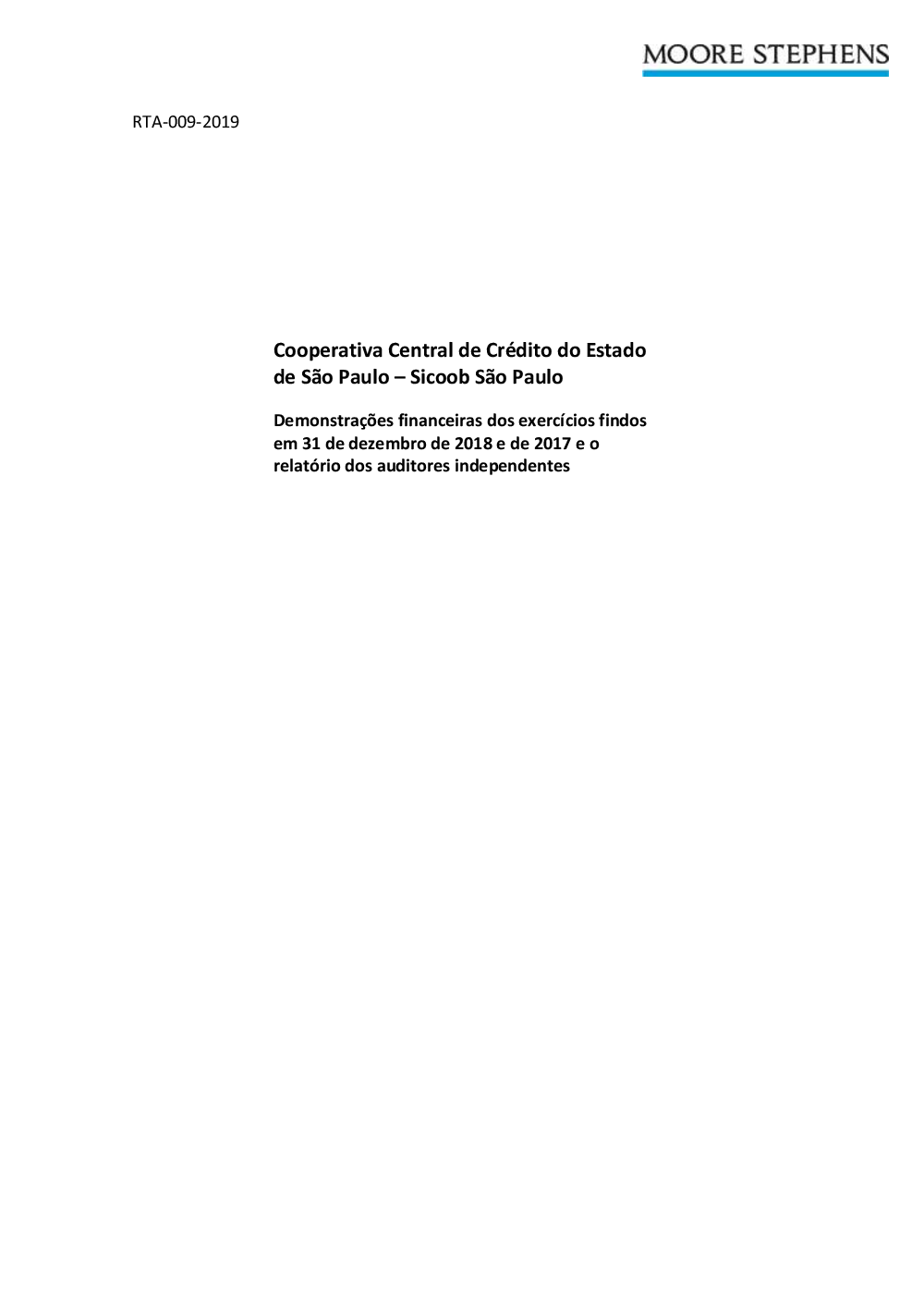 Demonstrações financeiras dos exercícios findos em 31 de dezembro de 2018 e de 2017 e o relatório dos auditores independentes