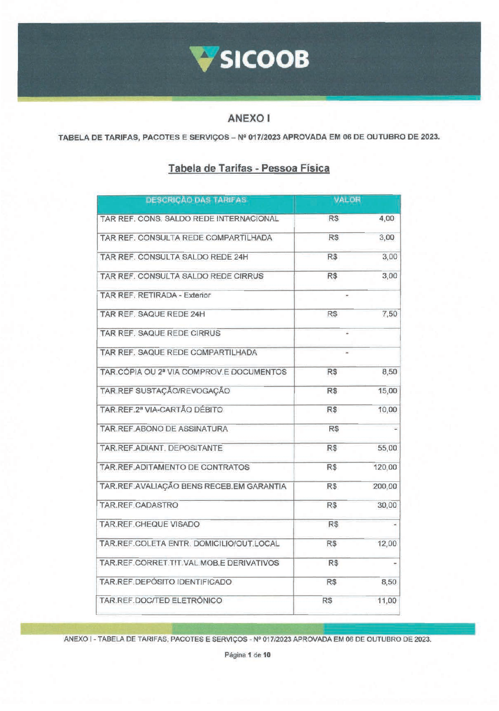 Tabela de Tarifas SICOOB CENTROLESTE -N 0172023.pdf