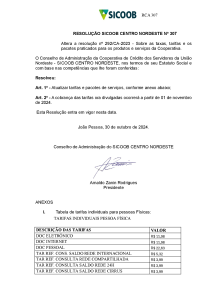 Tarifas - 3358 - Relatórios - Sicoob Centro Nordeste