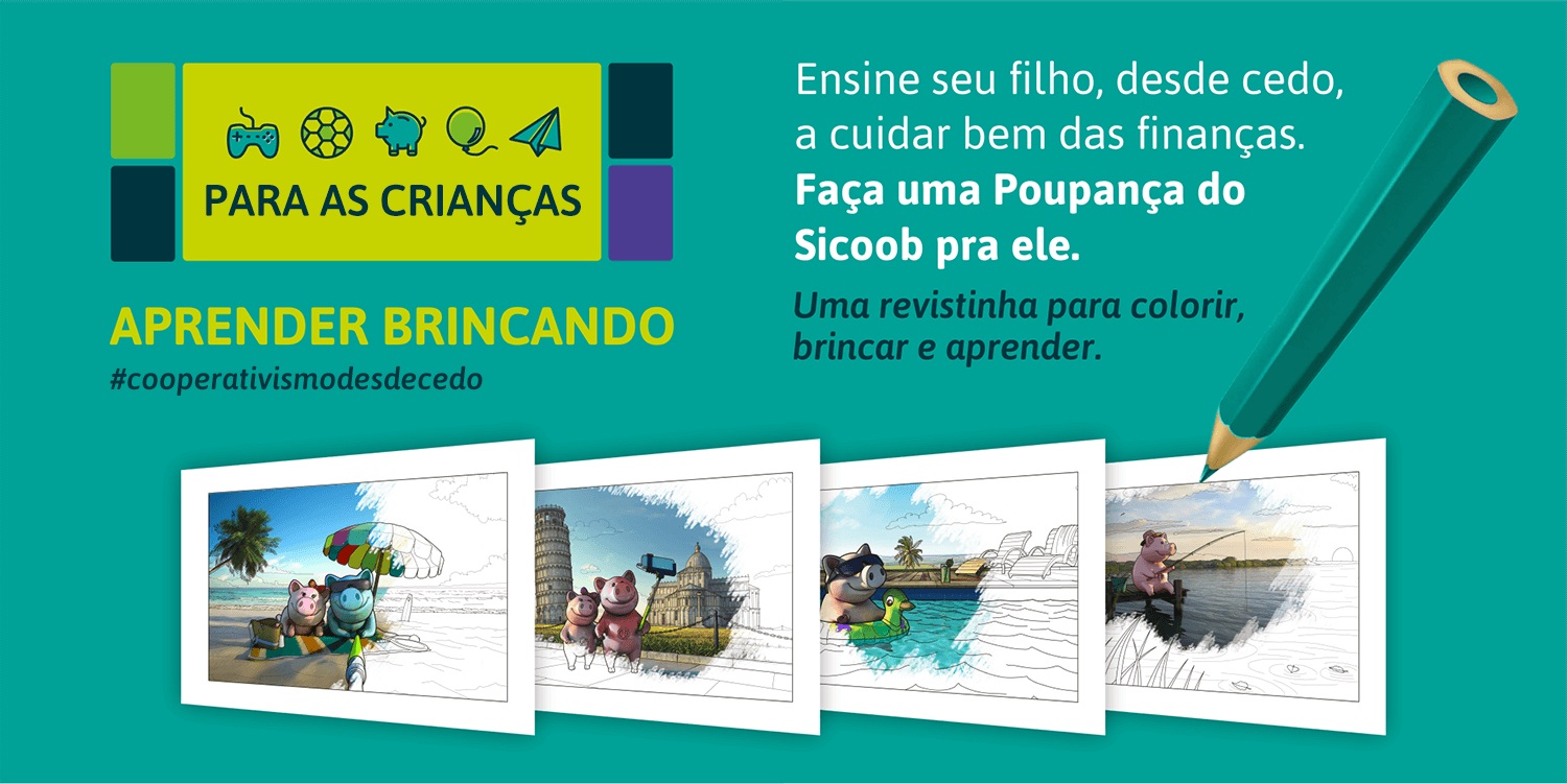 Um material criado pelo Instituto Sicoob para falar sobre sonhos, desejos, necessidades e poupança com o público infantil.