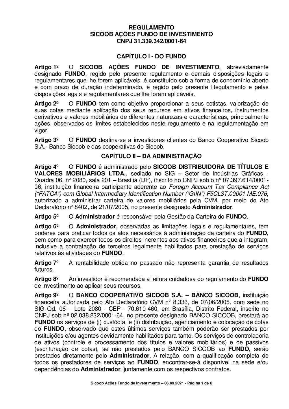 É credenciado pela Comissão de Valores Mobiliários (CVM) e foi constituído com a finalidade de administrar ativos financeiros de terceiros, inclusive por meio de fundos de investimentos exclusivos para as cooperativas do Sicoob.