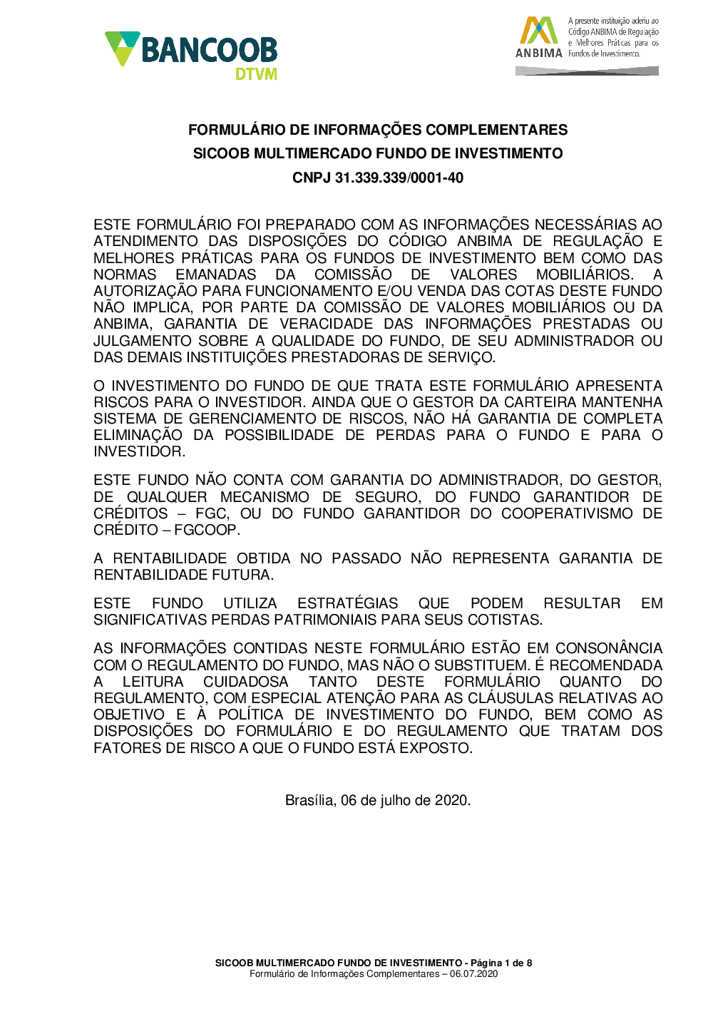 É credenciado pela Comissão de Valores Mobiliários (CVM) e foi constituído com a finalidade de administrar ativos financeiros de terceiros, inclusive por meio de fundos de investimentos exclusivos para as cooperativas do Sicoob.