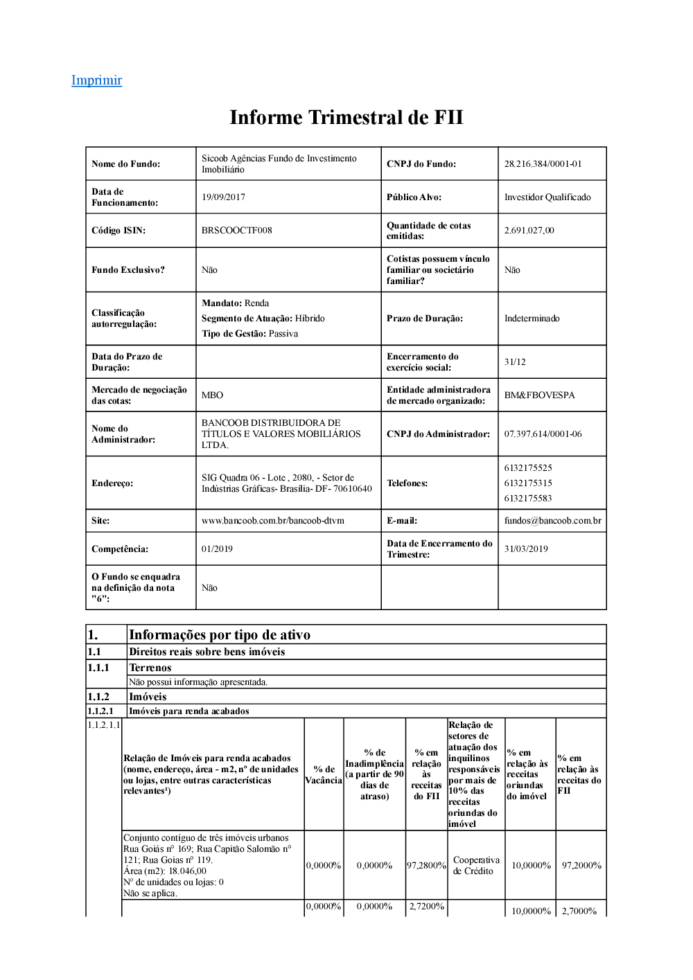 É credenciado pela Comissão de Valores Mobiliários (CVM) e foi constituído com a finalidade de administrar ativos financeiros de terceiros, inclusive por meio de fundos de investimentos exclusivos para as cooperativas do Sicoob.