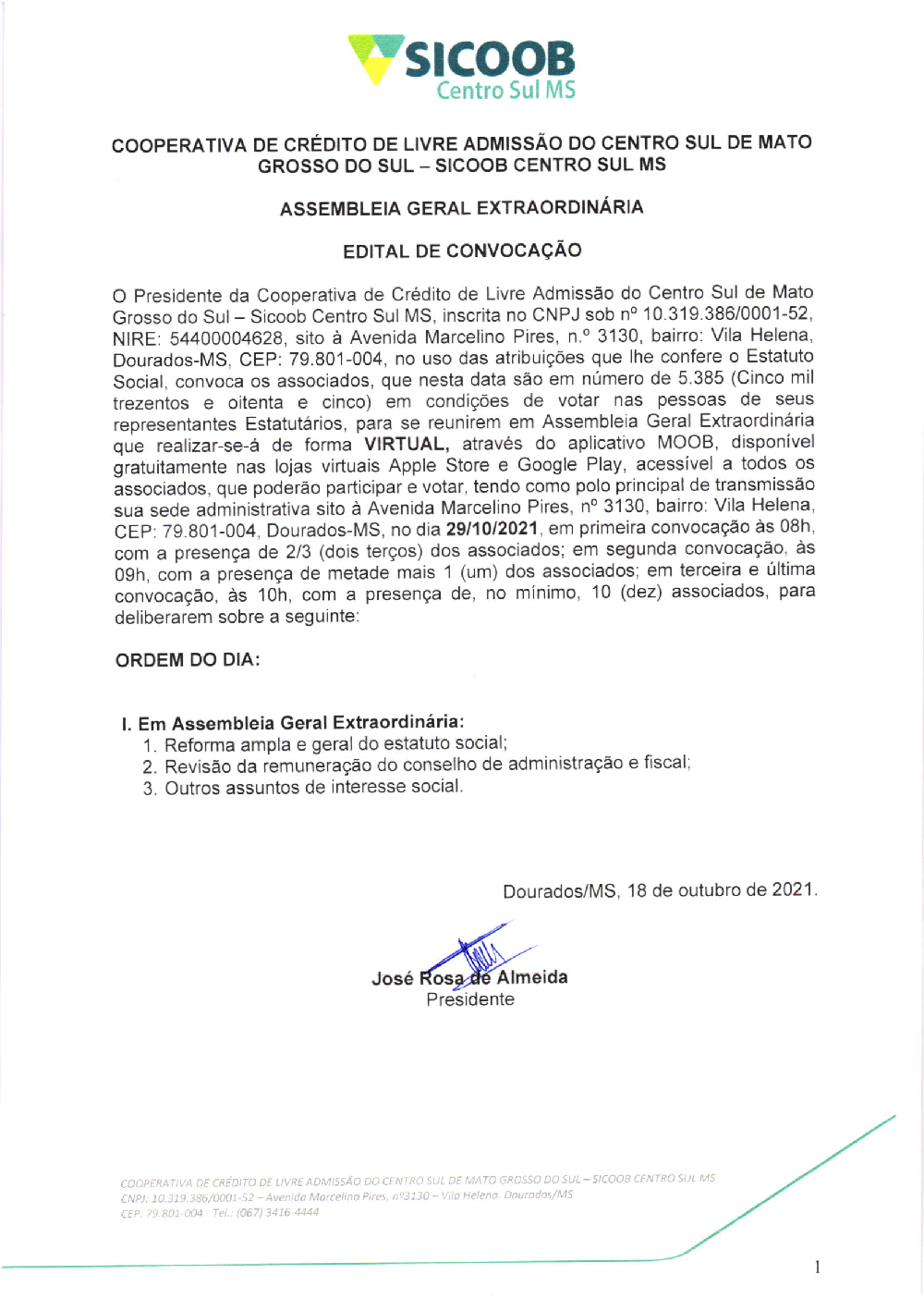 Edital de convocação - Assembleia Geral Extraordinária 2021