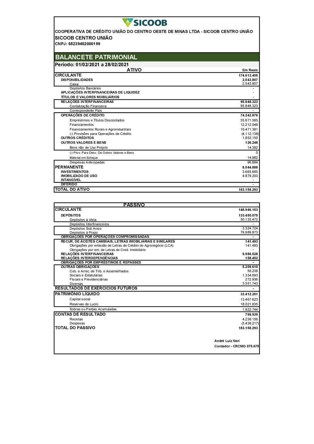 Balancete Patrimonial - 02/2021
