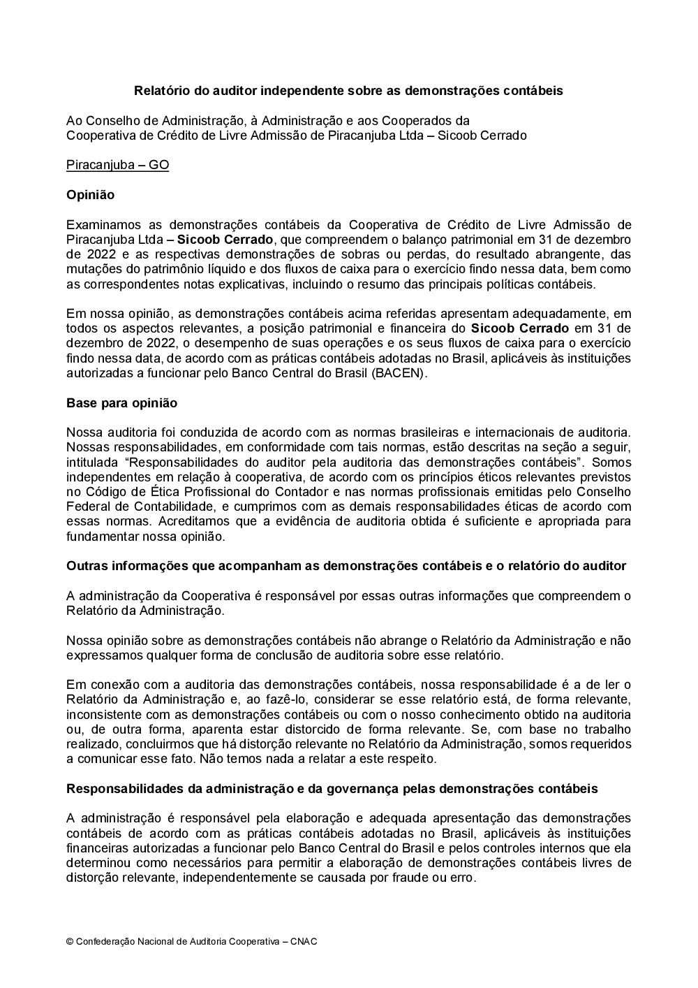 Relatório do auditor independente sobre as Demonstrações Contábeis 2022