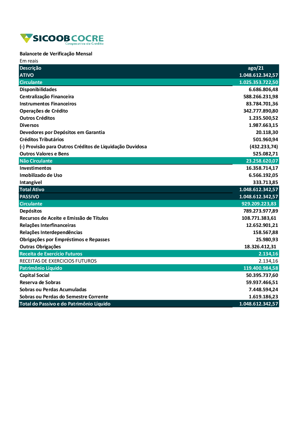 Demonstrações Financeiras 08/2021