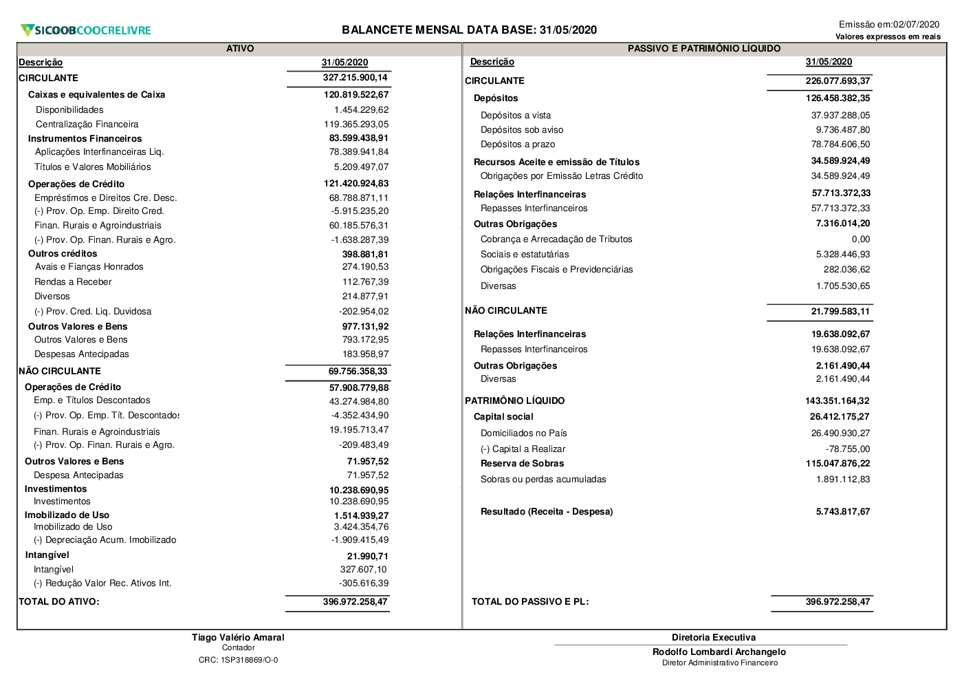 Relatórios - Sicoob Coocrelivre