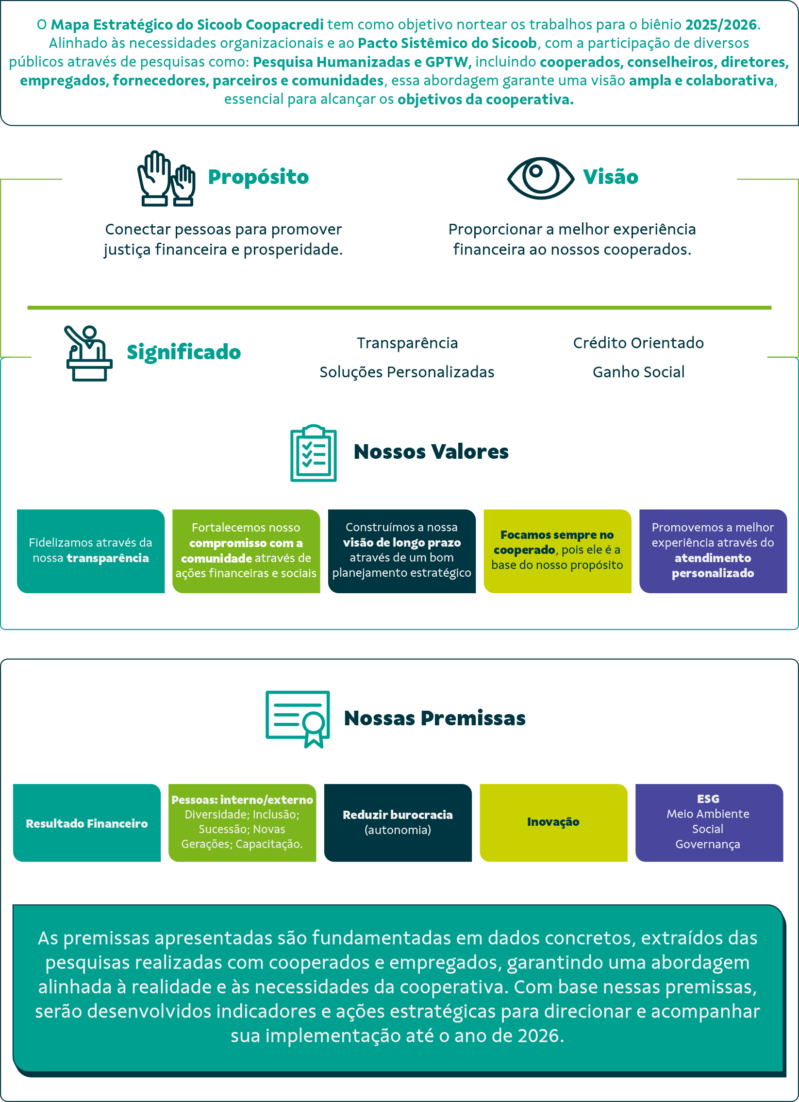 - Focamos sempre no cooperado, pois ele é a base do nosso propósito;