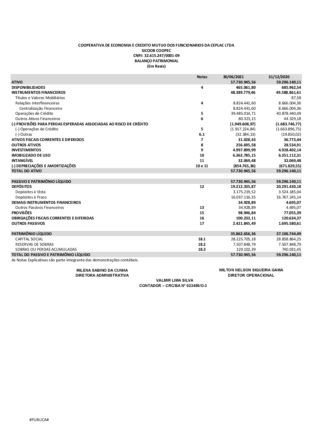 Demonstrações Financeiras - Sicoob Coopec