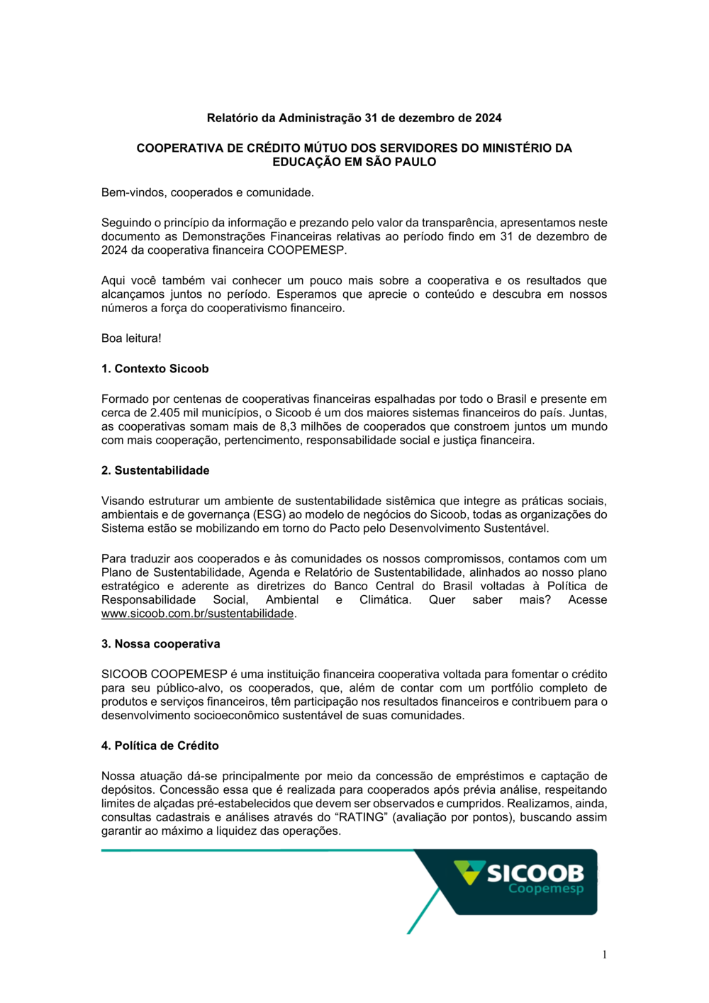 2 - Relatório da Administração - Sicoob Coopemesp - 2024