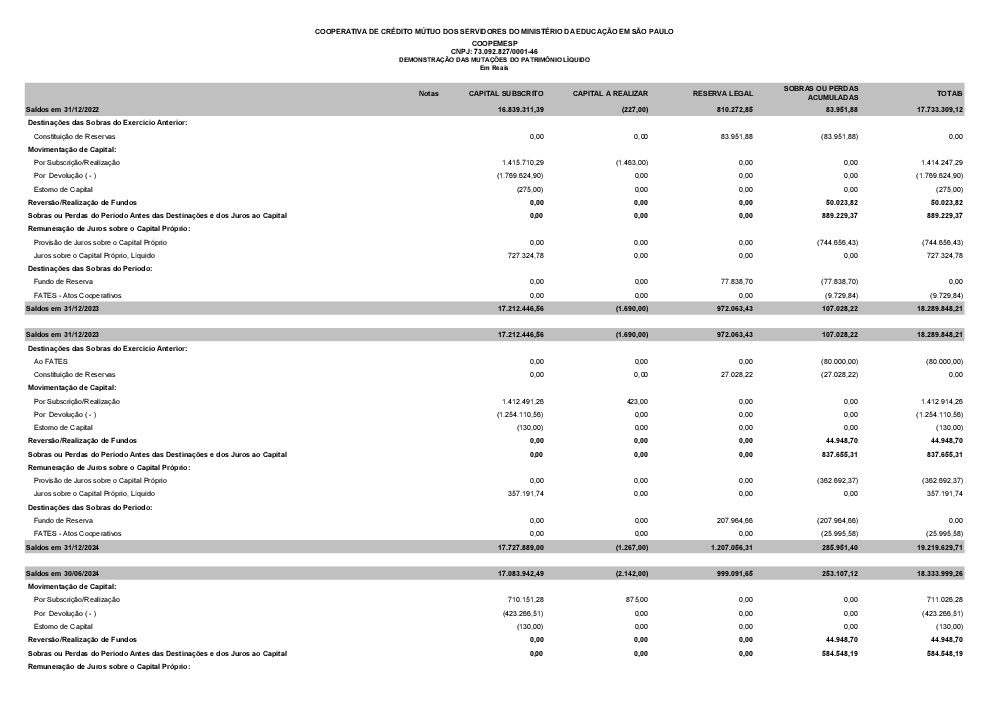5 - Demonstração das Mutações do Patrimônio Líquido - Sicoob Coopemesp - 4254