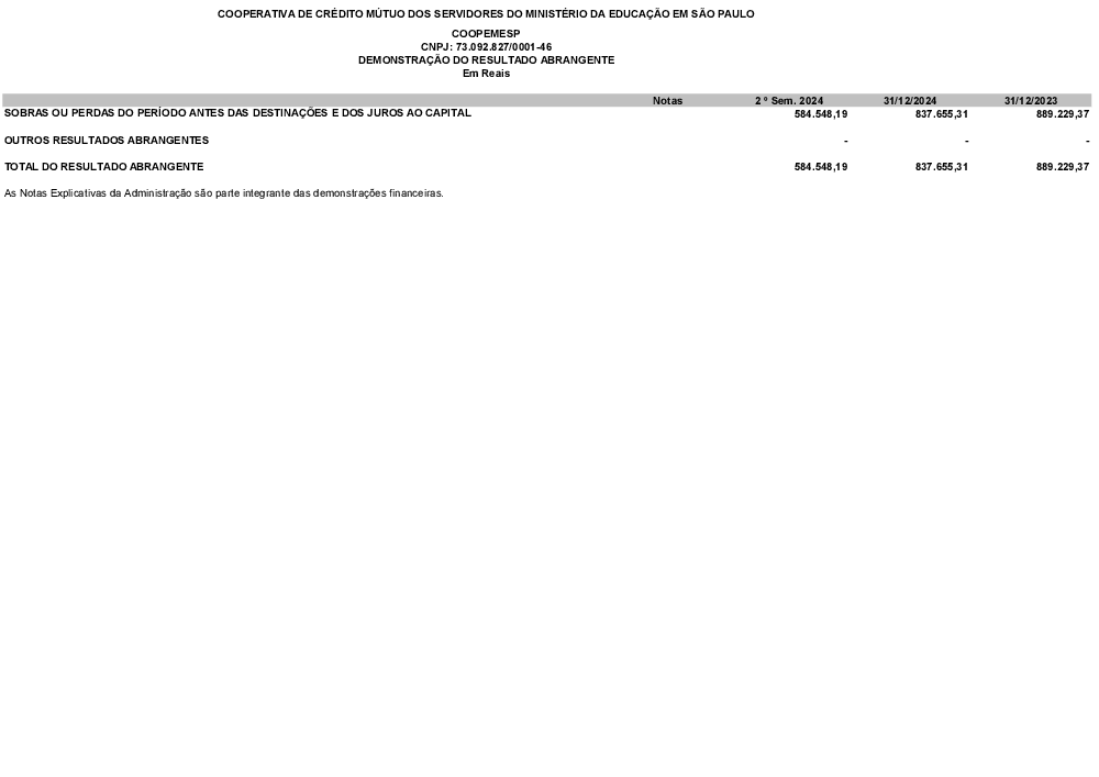 6 - Demonstração do Resultado Abrangente - Sicoob Coopemesp - 4254