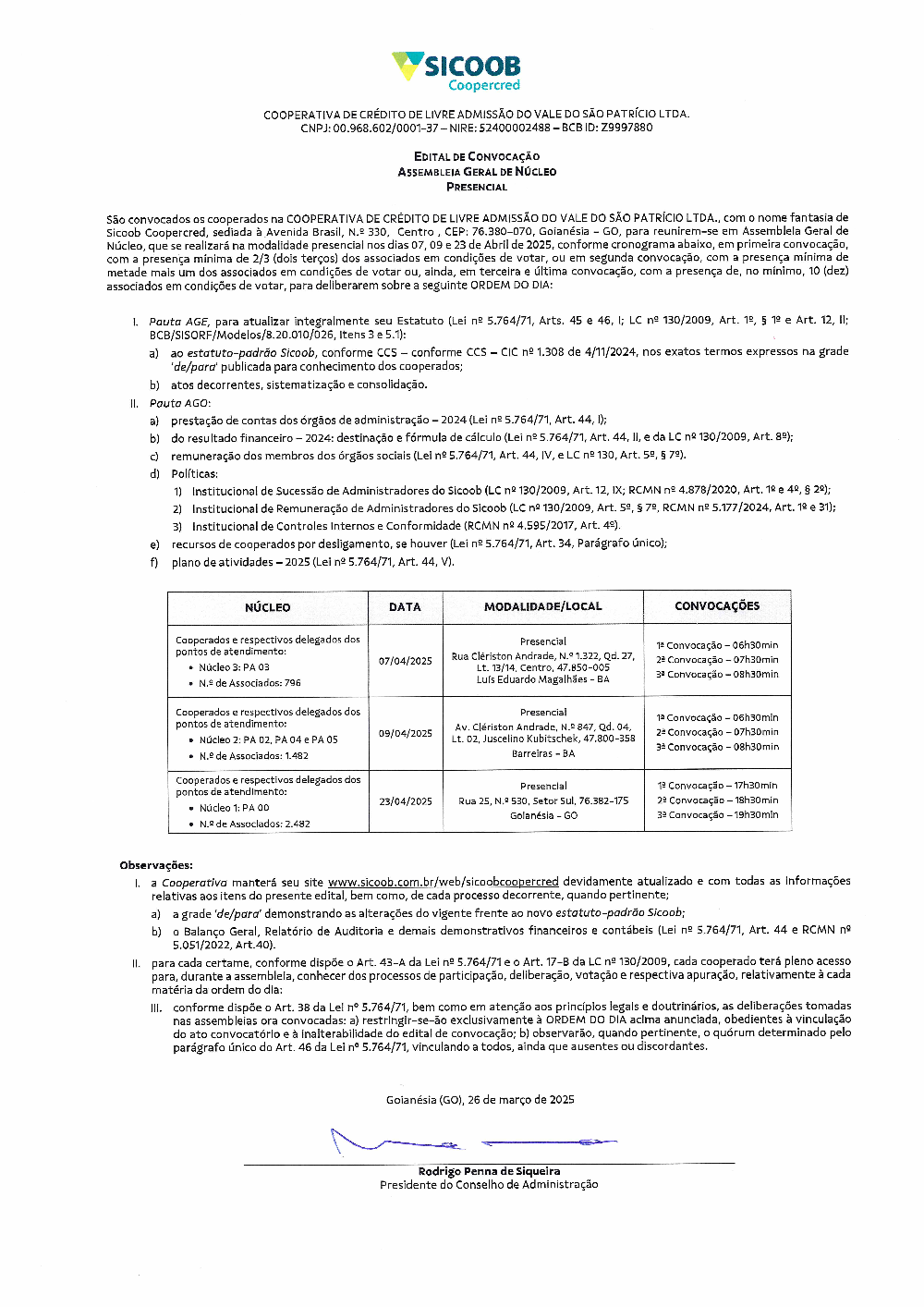 - Edital de convocação Assembleia Geral de Nucleo Presencial.