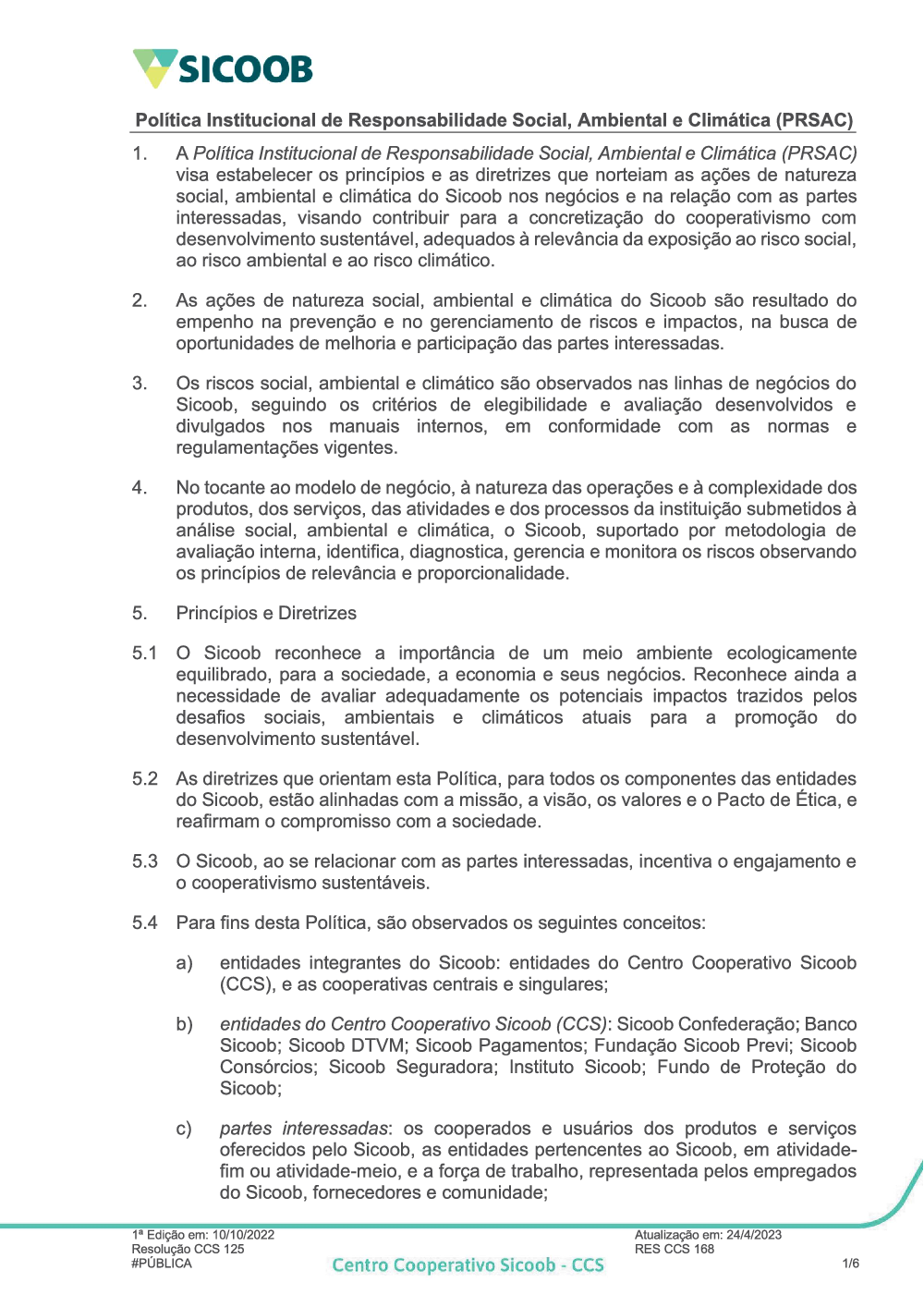 Politica Institucional de Responsabilidade Social, Ambiental e Climática