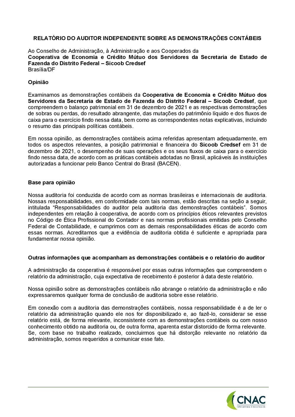 Microsoft Word - Relatório de Opinião - Sicoob Credsef - 31.12.21