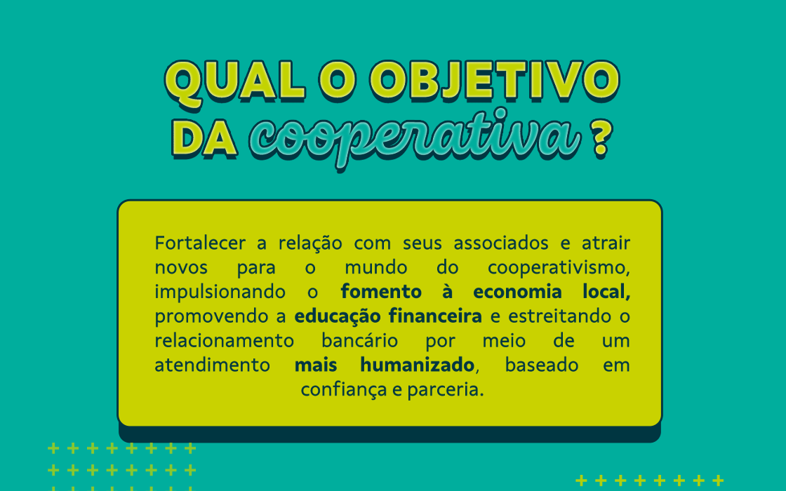 Nosso propósito é ser a Cooperativa preferida de nossos cooperados, destacando-nos pela qualidade no atendimento, pela inovação e pelo compromisso com o desenvolvimento sustentável e social de nossas comunidades. Aqui, seu sucesso é o nosso sucesso.