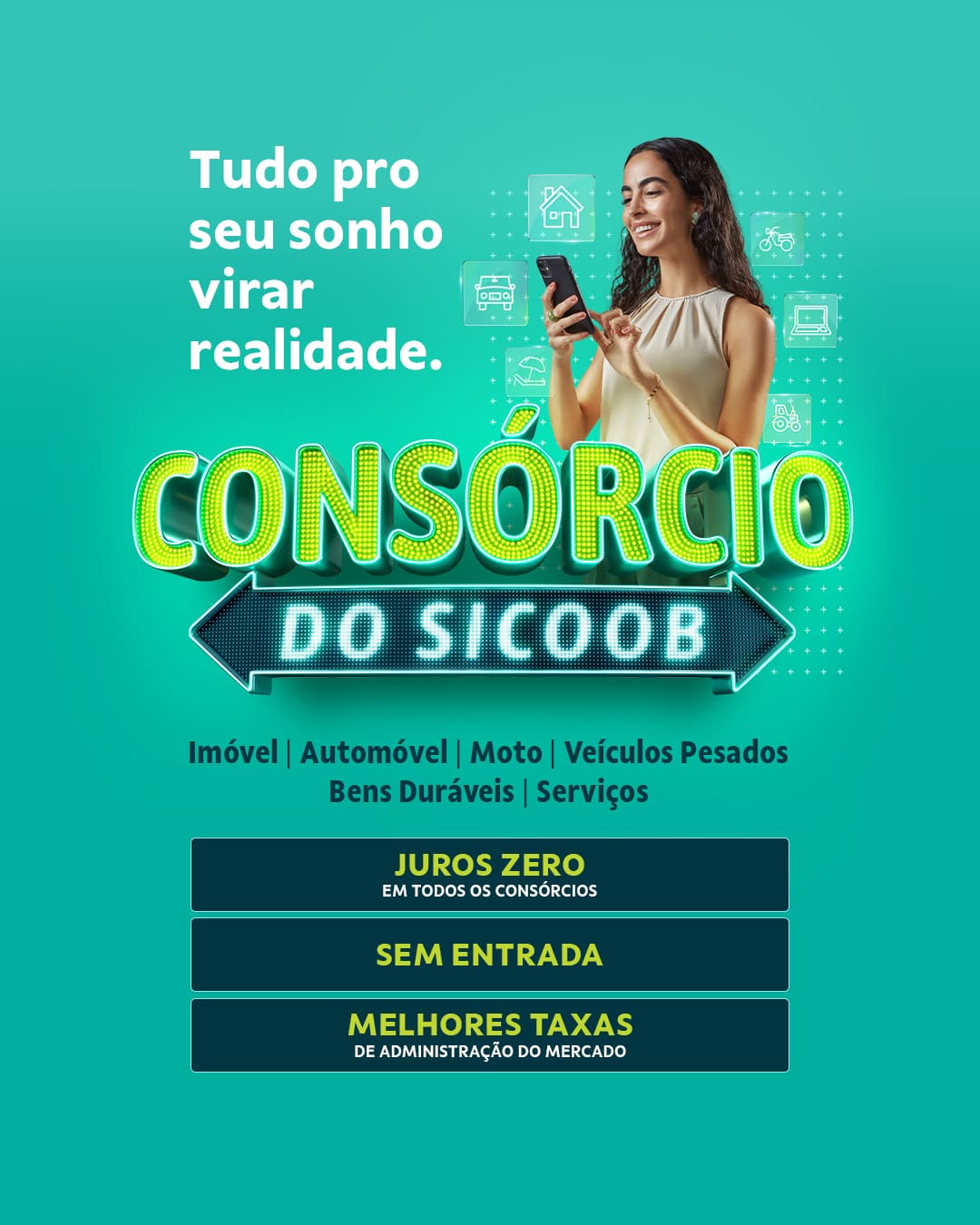 O Sicoob Coopjus está com uma campanha imperdível para você que quer transformar projetos em realidade com economia, planejamento e as vantagens do cooperativismo. Com o Consórcio do Sicoob, você conquista bens como imóveis, veículos, motos, veículos pesados, serviços e bens duráveis com juros zero, sem entrada e taxas de administração imbatíveis.