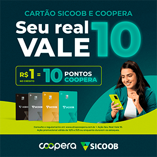 De 12 a 31 de maio, cooperados do Sicoob que realizarem compras com cartões de crédito Sicoob no Marketplace Coopera ganham 10 pontos Coopera de cashback a cada R$ 1 gasto. A ação promocional faz parte da campanha “Seu Real Vale 10 – Edição Maio” e é válida tanto para pessoas físicas quanto jurídicas, desde que tenham conta ativa no Coopera e cartão de crédito Sicoob.