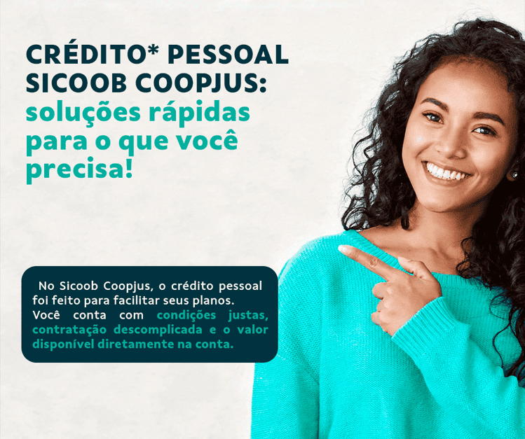 No Sicoob Coopjus, seus projetos podem ser realizados. Com o Crédito Pessoal*, você conta com uma solução prática, taxas competitivas e liberação ágil, com o valor creditado diretamente na sua conta.