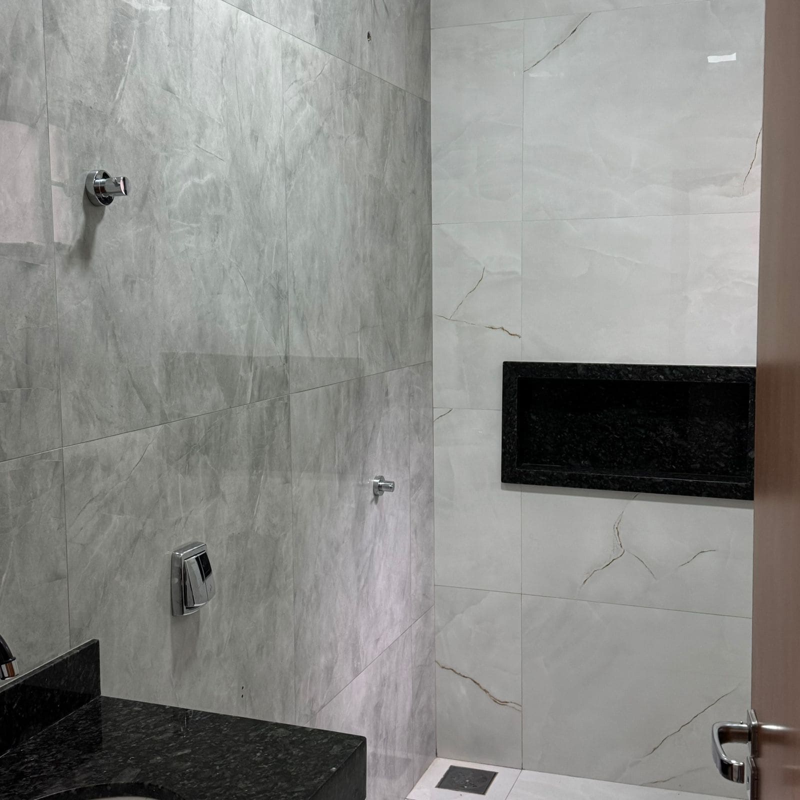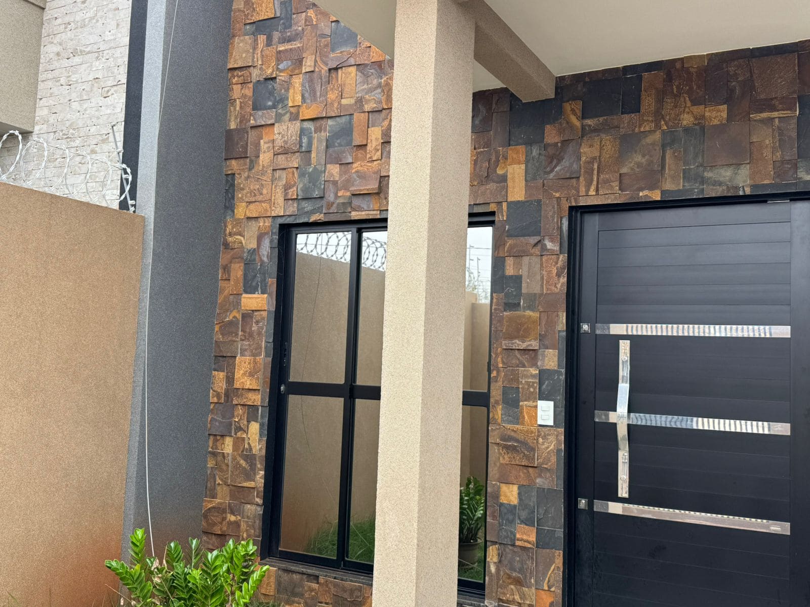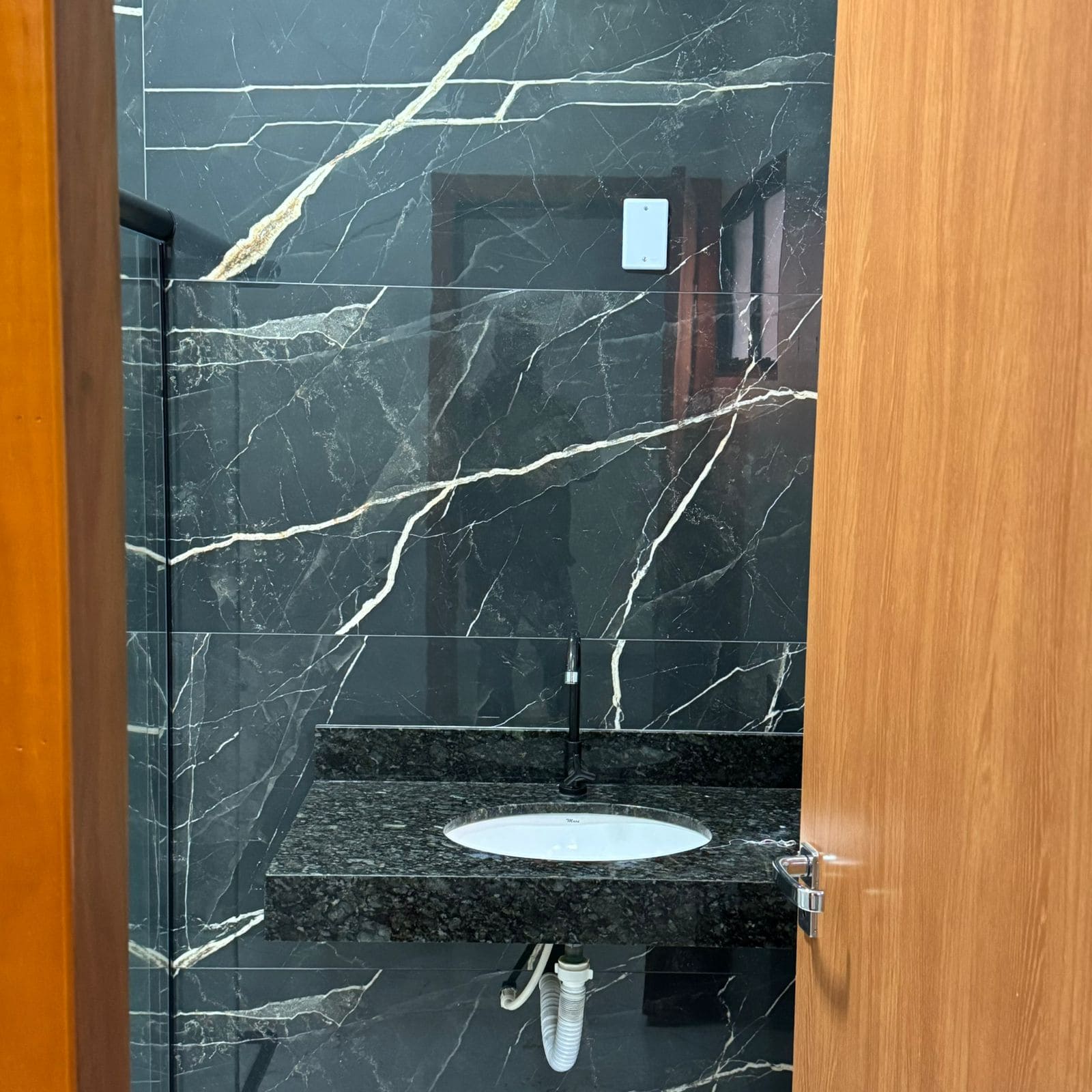 99,72 m² - 01 garagem, 01 hall externo, 01 sala de TV, 01 cozinha, 01 área de serviço, 02 dormitórios, 01 banheiro, 01 suíte, 01 banheiro da suíte, piso de porcelanato, esquadrias de vidro, forro de laje, cobertura com telhas de