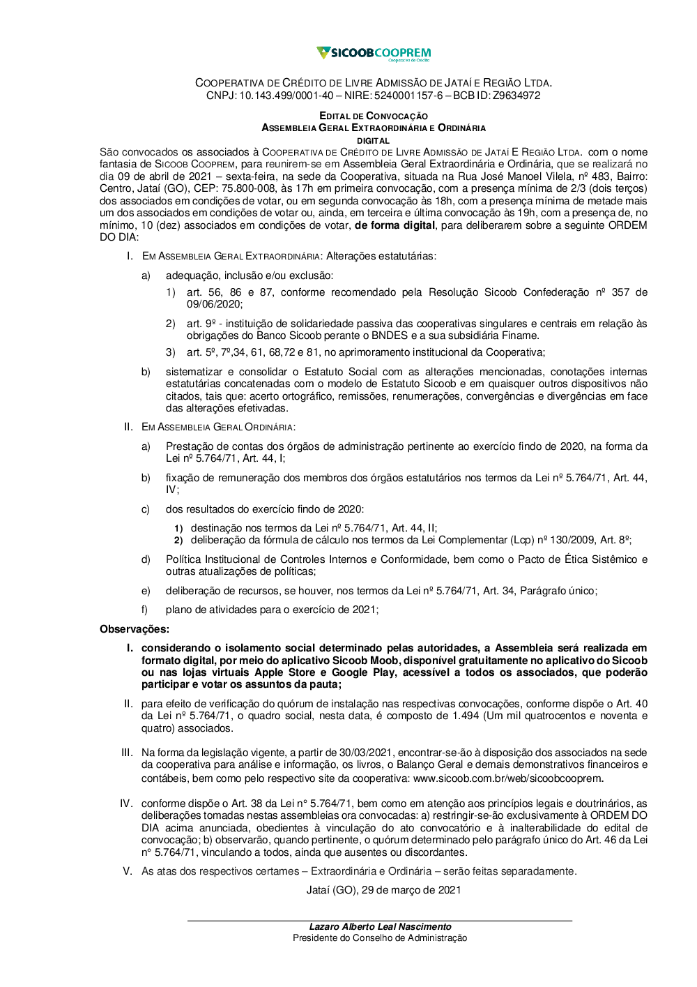 EDITAL DE CONVOCAÇÃO AGEO 2021
