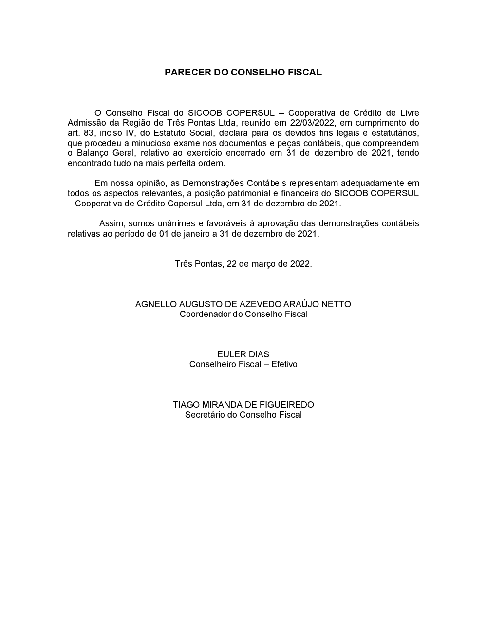Parecer do Conselho Fiscal