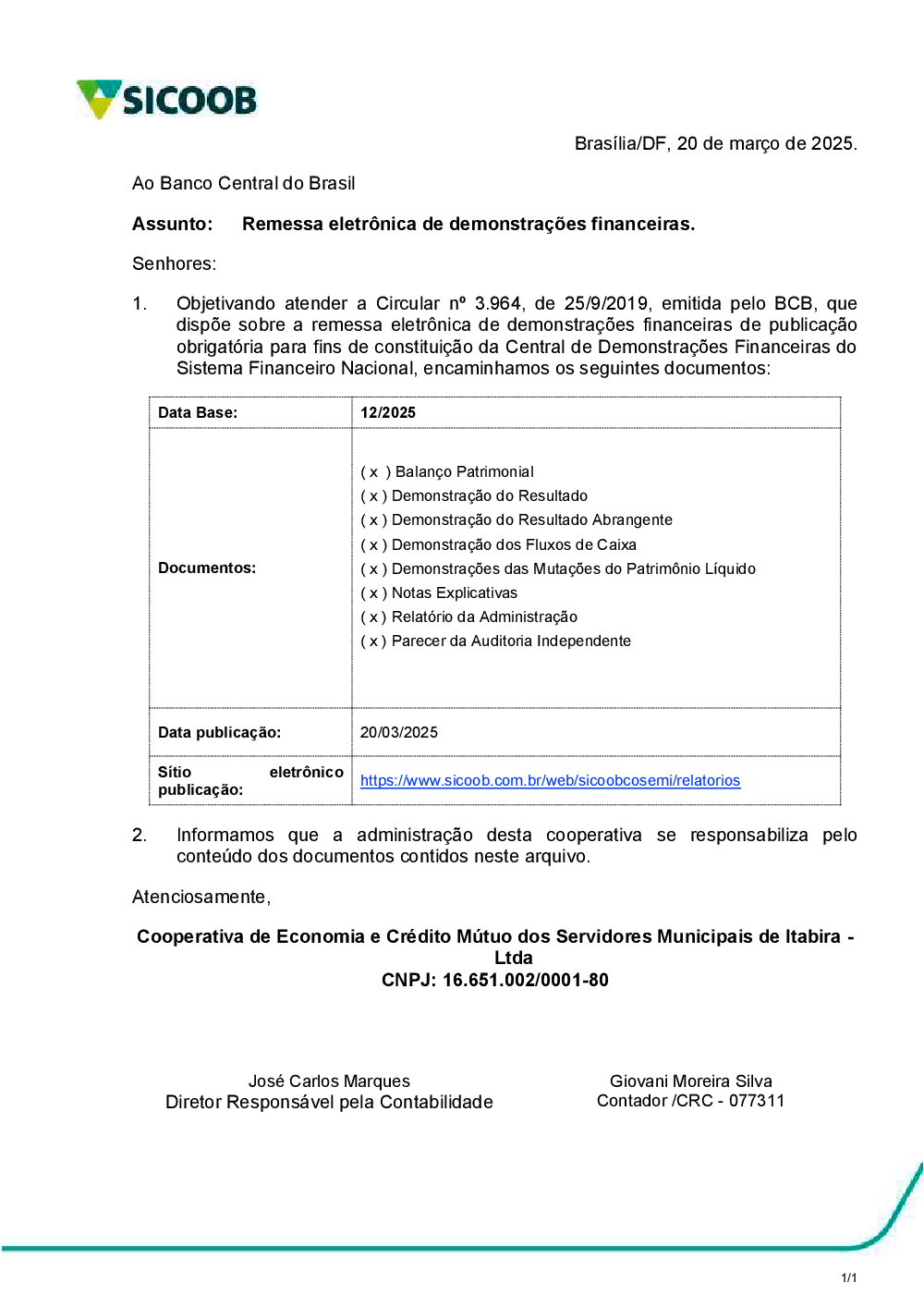DEMONSTRAÇÕES CONTÁBEIS - SICOOB COSEMI 2025