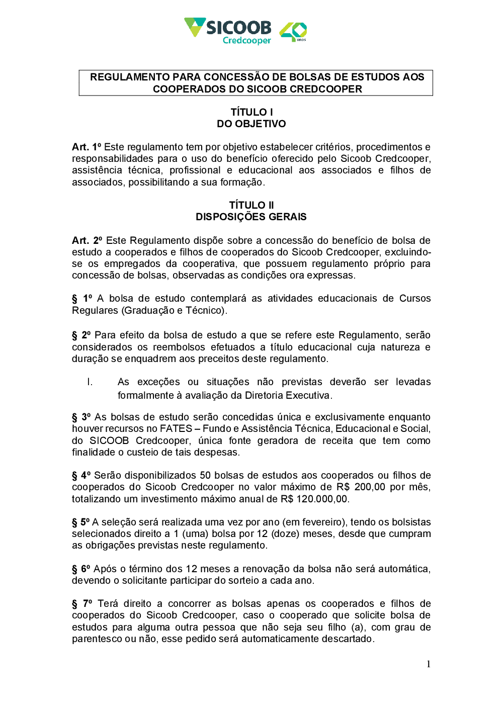 REGULAMENTO PARA CONCESSÃO DE BOLSAS DE ESTUDOS AOS COOPERADOS DO SICOOB CREDCOOPER - 2024.pdf